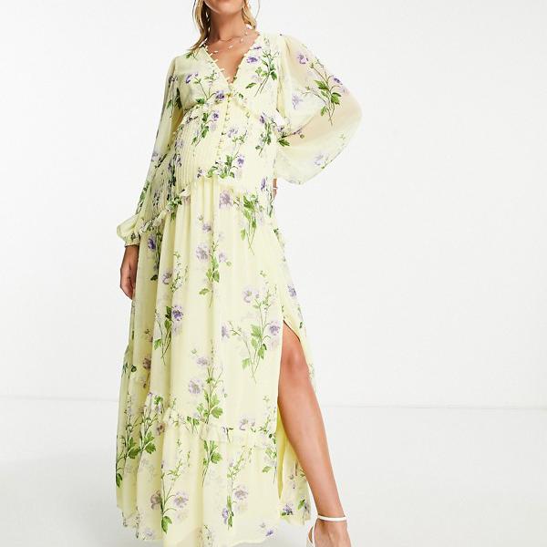 エイソス ASOS asos ASOSDESIGNマタニティボタンスルーピンタックマキシドレスイエローフローラルプリント ワンピース レディース 女性 インポートブランド 小さいサイズから大きいサイズまで