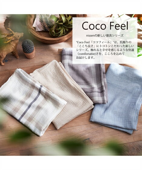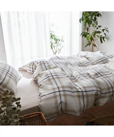 寝具 掛け布団カバー Coco Feel コットン100% ウォッシュ加工 ふんわり 柔らか ダブルガーゼ チェック柄 アイボリー×ベージュ系/グレー×ネイビー系 シングル ニッセン nissen