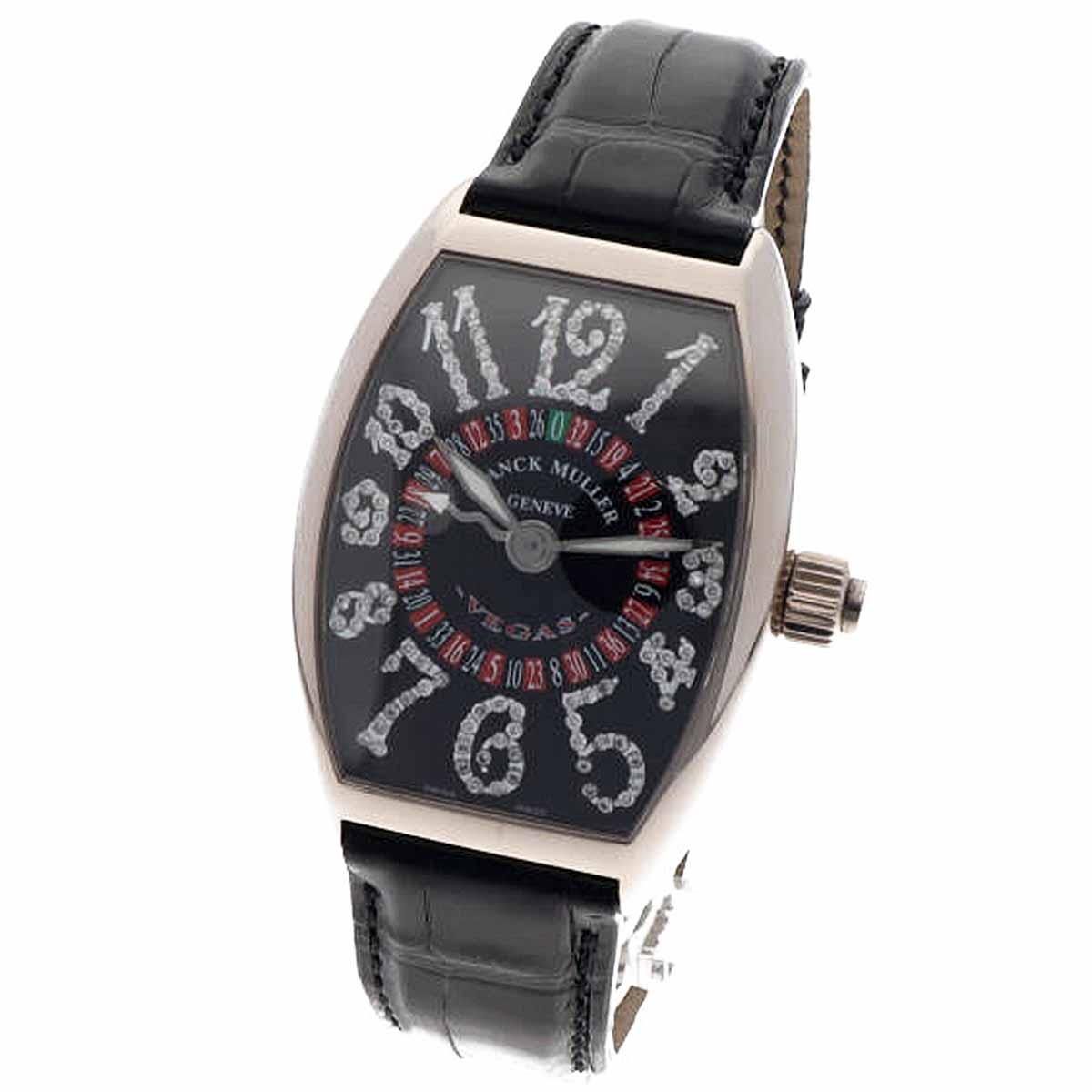 FRANCK MULLER フランクミュラー ダイヤモンド 5850VEGASCD OG トノ-カーベックス ヴェガス 自動巻き 750 K18 WG ホワイトゴールド ブラッククロコレザーストラップ SWISS MADE【送料無料】 時計【中古】21871102