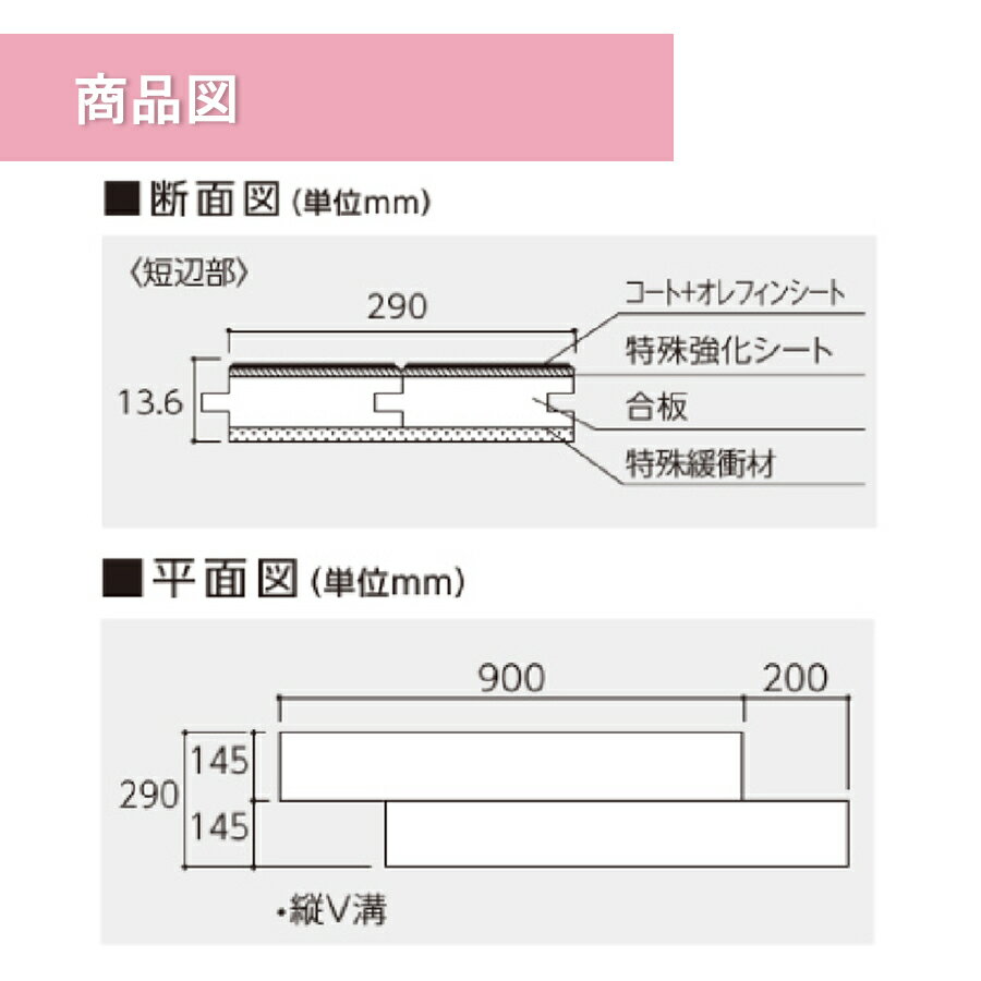 ◆商品詳細 ・サイズ:13.6(4.5)×290×900mm ・表面仕上げ:抗菌加工・コート・オレフィンシート ・基材:特殊強化シート+合板 ・梱包入数:1ケース12枚入り/約3.13(約1坪) ・直貼り工法専用 ・製造元:永大産業株式会社 ・カラーは6色よりお選び下さい ※カラー別商品もございます ◆おすすめポイント ・傷や摩擦だけではなく遮音性能が優れているので△LL(I)-4をクリア ・床暖房やホットカーペットの使用時に起こりやすいヒビ割れを軽減 ※商品画像はイメージです。