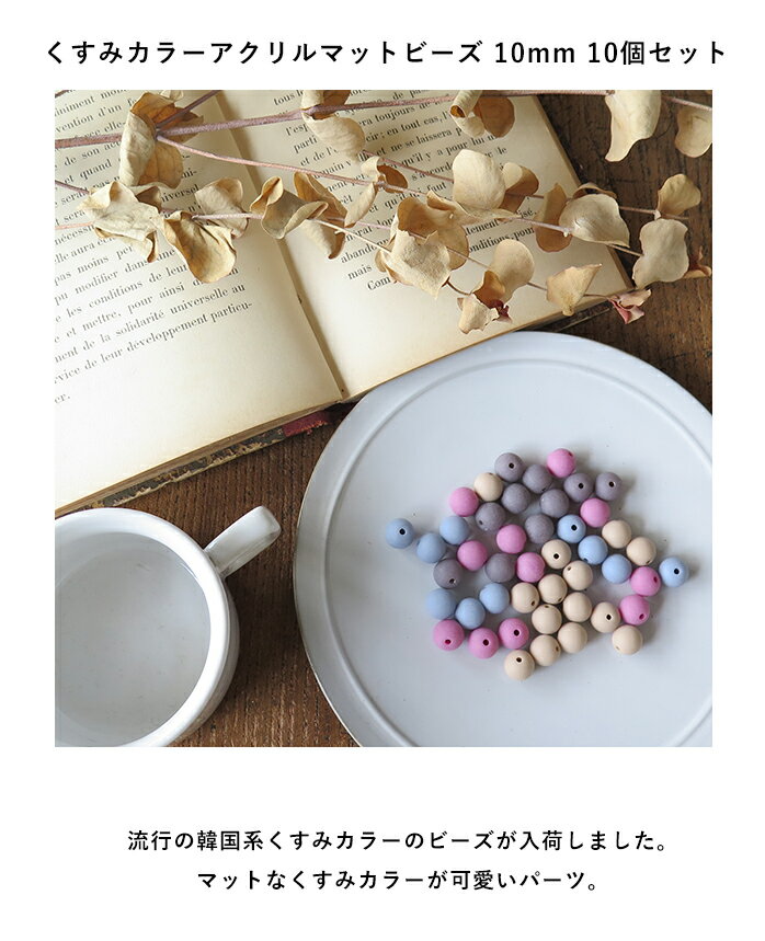 基礎金具一覧はコチラ infomation メール便にて発送可能です 合計3,300円以上お買い上げでメール便送料無料になります 午前9時までのご注文・お振込で当日発送になります商品名 くすみカラーマットアクリルビーズ 10mm 10個セット 概要 マットなくすみカラーが可愛いビーズ様々なアレンジガシやすく色合いも自然です。