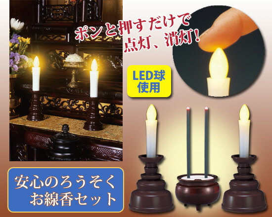 【在庫有】ろうそく led 【日本製】【安心のろうそく・お線香セット 小】 LEDろうそく LED蝋燭 LED線香 電子ろうそく 電子蝋燭 電気ろうそく 電気蝋燭 LEDキャンドル