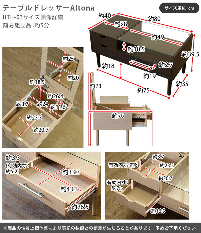 商品番号 UTH-03 商品説明 簡易組立品(約5分) ドレッサーにもなるセンターテーブル♪