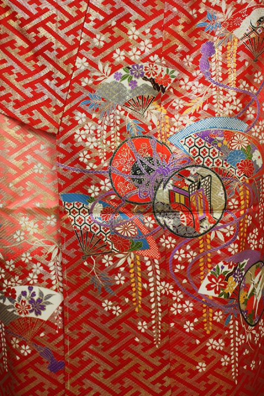 仕立てをご希望いただいた場合 寸法など詳細につきましては後ほどこちらからご連絡致します 納期は30〜40日後となります サイズ 反幅: 37cm 色 赤×金×紫 素材 絹 商品写真に関してのご注意 できるだけ商品と同じ色目を出すよう努力しておりますが、表示画面等の違いから現物と色の違いが生じる場合がございます。